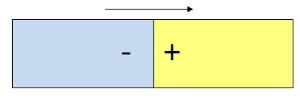 При его раздражении электрическое сопротивление мембраны резко снижается, что приводит к тому, что возбужденный участок одиночного мышечного волокна становится электроотрицательным по отношению к соседним участкам, которые еще находятся в состоянии покоя и являются положительно заряженными по отношению к возбужденному участку. На границе раздела между положительно и отрицательно заряженными частями находится нулевая линия, имеющая нейтральный заряд (Рис.2). Таким образом, можно сказать, что в процессе деполяризации мышечного волокна образуется диполь и электрическое поле. Ось диполя представляет собой линию, соединяющую отрицательный и положительный заряды. Эта линия расположена параллельно направлению распространения волны возбуждения. Если в такое электрическое поле поместить электроды гальванометра, то прибор зарегистрирует электрический ток. Ток ионов, возникающий при раздражении клетки, аналогичен электрическому току, возникающему при соединении цепи от проводников электрической батареи.